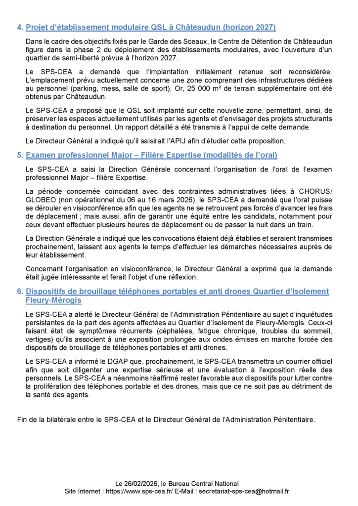 24/02/2026 : audience bilatérale avec le Directeur Général de l’Administration Pénitentiaire