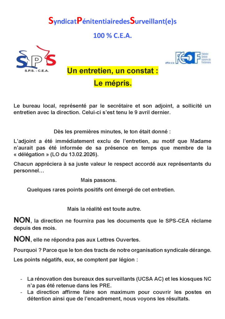 SPS-CEA | Syndicat Pénitentiaire des Surveillants – Corps d’Encadrement et d’Application