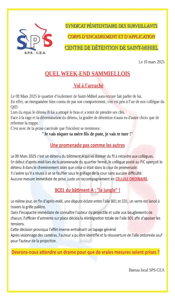 SPS-CEA | Syndicat Pénitentiaire des Surveillants – Corps d’Encadrement et d’Application