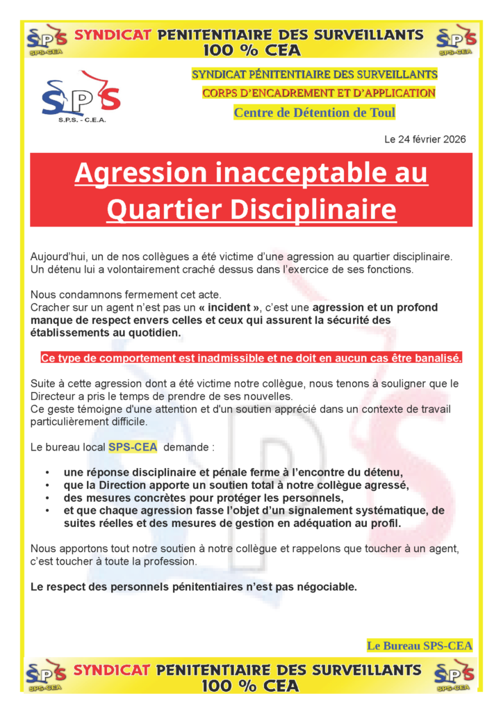 CD de Toul : agression inacceptable au quartier disciplinaire