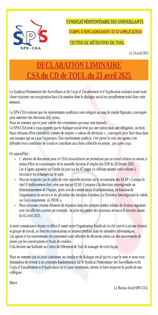 SPS-CEA | Syndicat Pénitentiaire des Surveillants – Corps d’Encadrement et d’Application