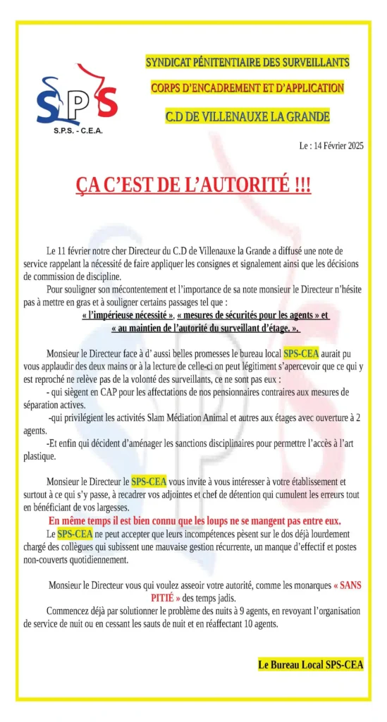 SPS-CEA | Syndicat Pénitentiaire des Surveillants – Corps d’Encadrement et d’Application