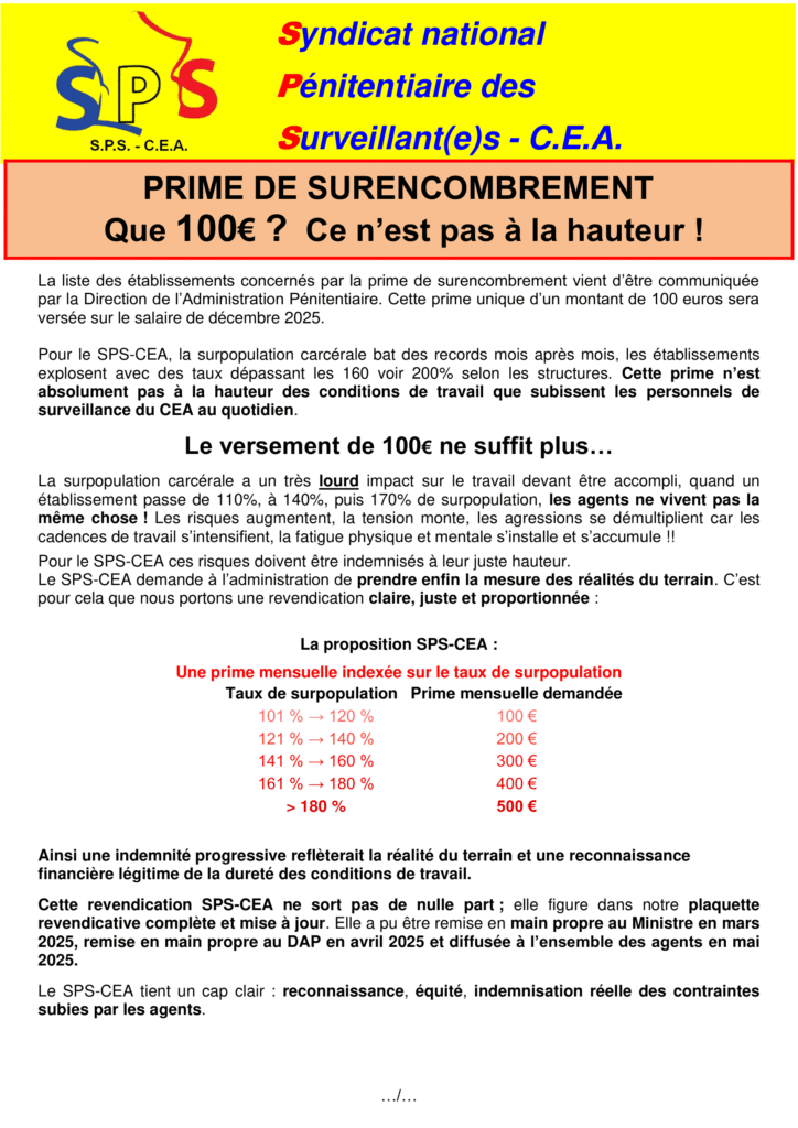 SPS-CEA | Syndicat Pénitentiaire des Surveillants – Corps d’Encadrement et d’Application