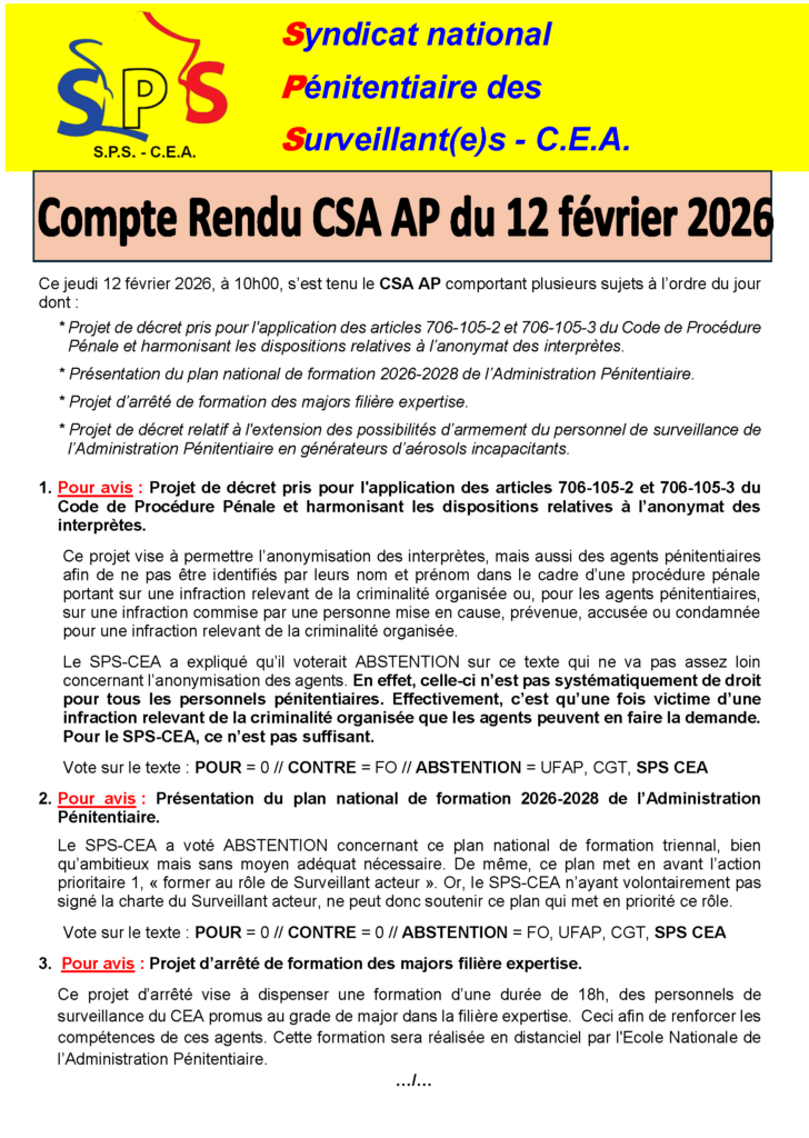 SPS-CEA | Syndicat Pénitentiaire des Surveillants – Corps d’Encadrement et d’Application