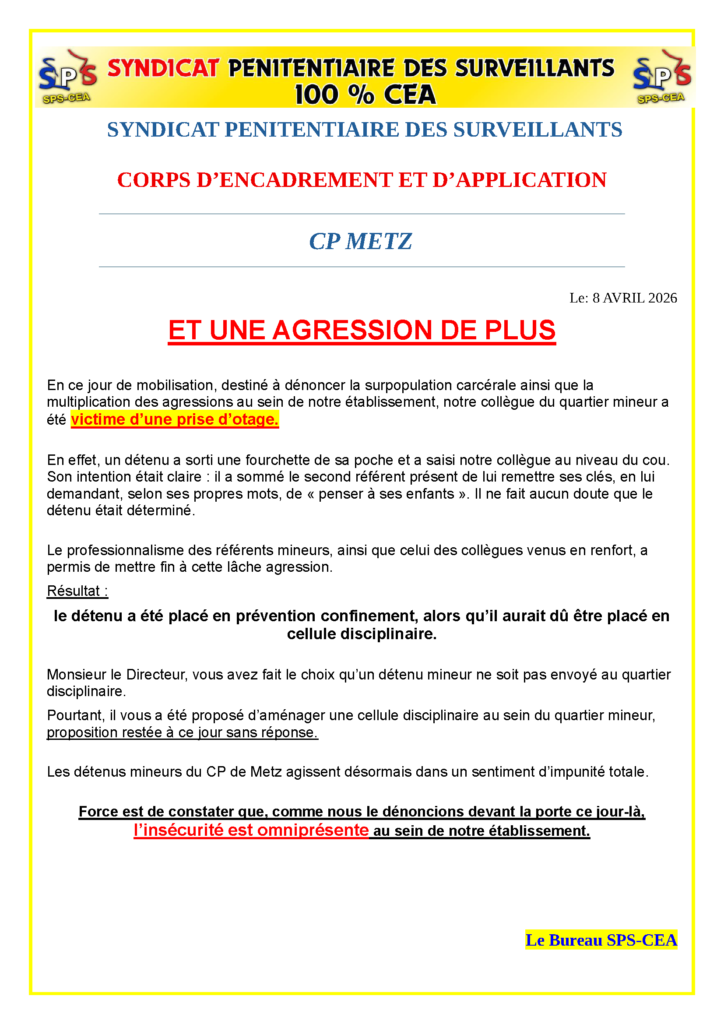SPS-CEA | Syndicat Pénitentiaire des Surveillants – Corps d’Encadrement et d’Application