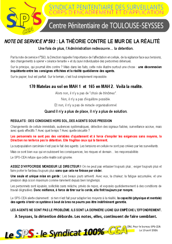 SPS-CEA | Syndicat Pénitentiaire des Surveillants – Corps d’Encadrement et d’Application