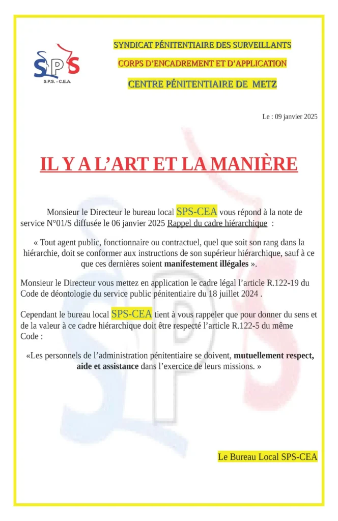 SPS-CEA | Syndicat Pénitentiaire des Surveillants – Corps d’Encadrement et d’Application
