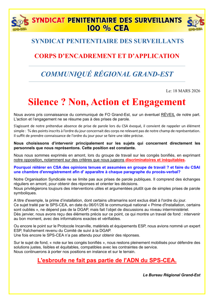 SPS-CEA | Syndicat Pénitentiaire des Surveillants – Corps d’Encadrement et d’Application