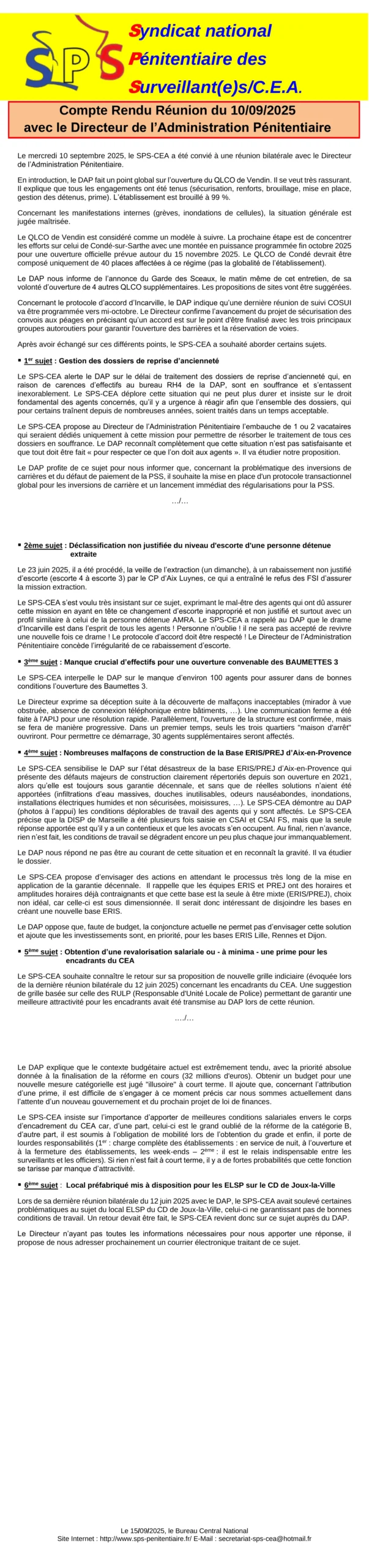 Compte Rendu Réunion du 10/09/2025 avec le Directeur de l’Administration Pénitentiaire
