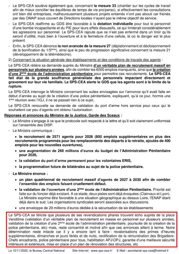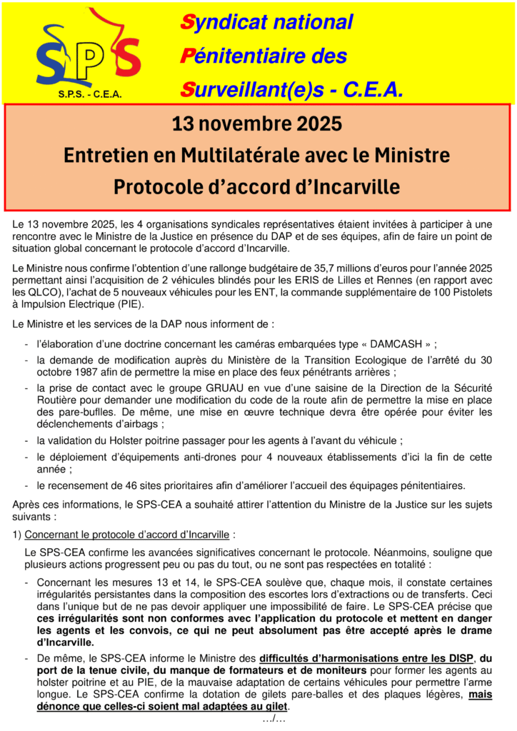 SPS-CEA | Syndicat Pénitentiaire des Surveillants – Corps d’Encadrement et d’Application