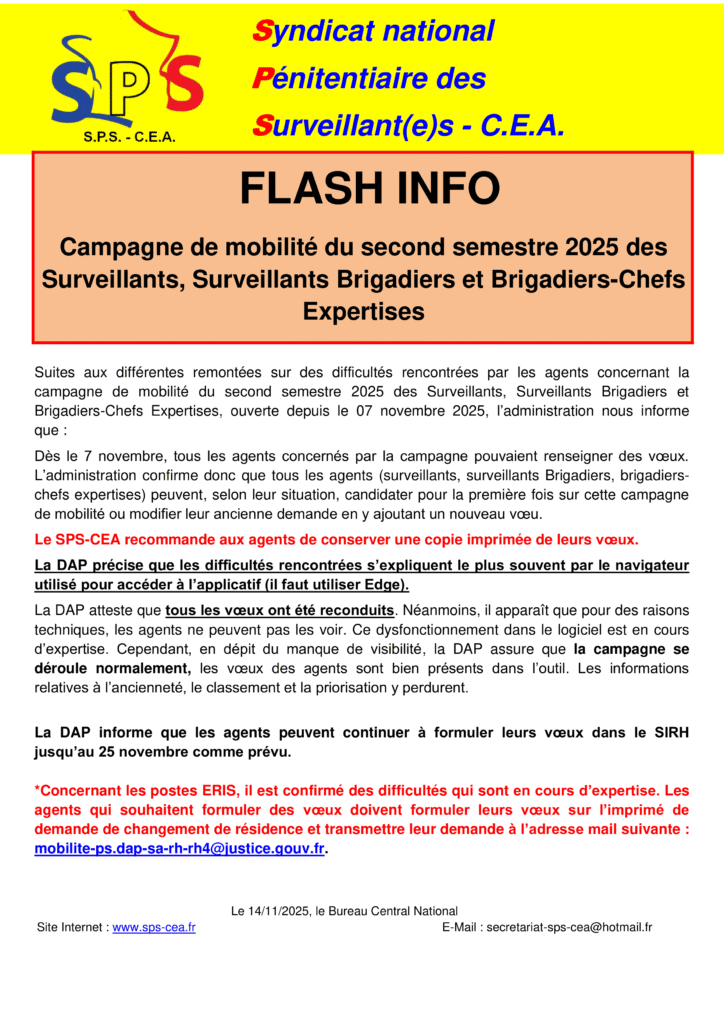 SPS-CEA | Syndicat Pénitentiaire des Surveillants – Corps d’Encadrement et d’Application
