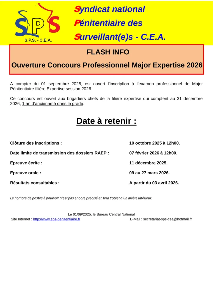FLASH INFO Ouverture Concours Professionnel Major Expertise 2026