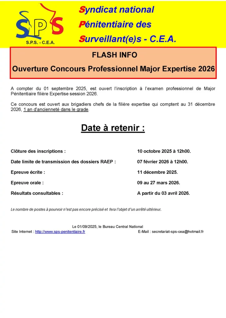 FLASH INFO Ouverture Concours Professionnel Major Expertise 2026