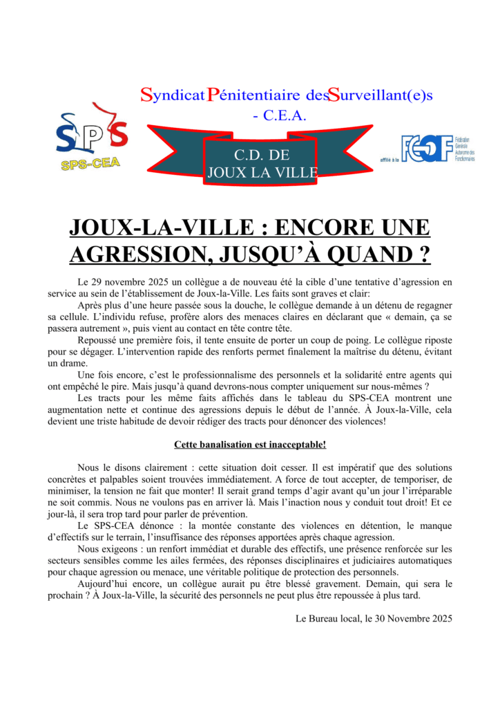 SPS-CEA | Syndicat Pénitentiaire des Surveillants – Corps d’Encadrement et d’Application