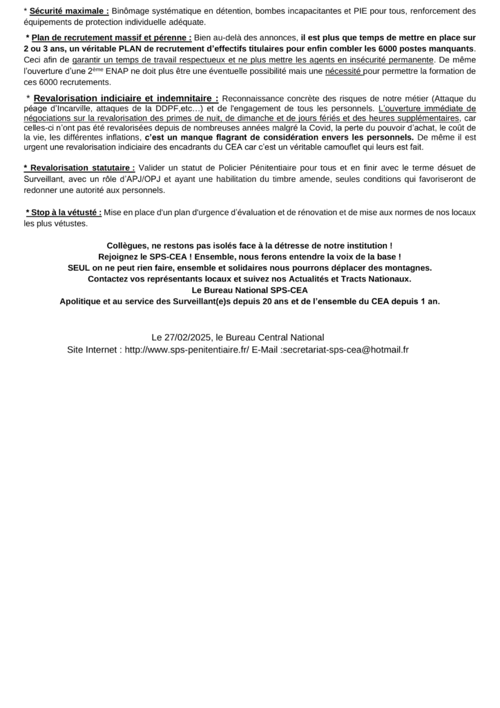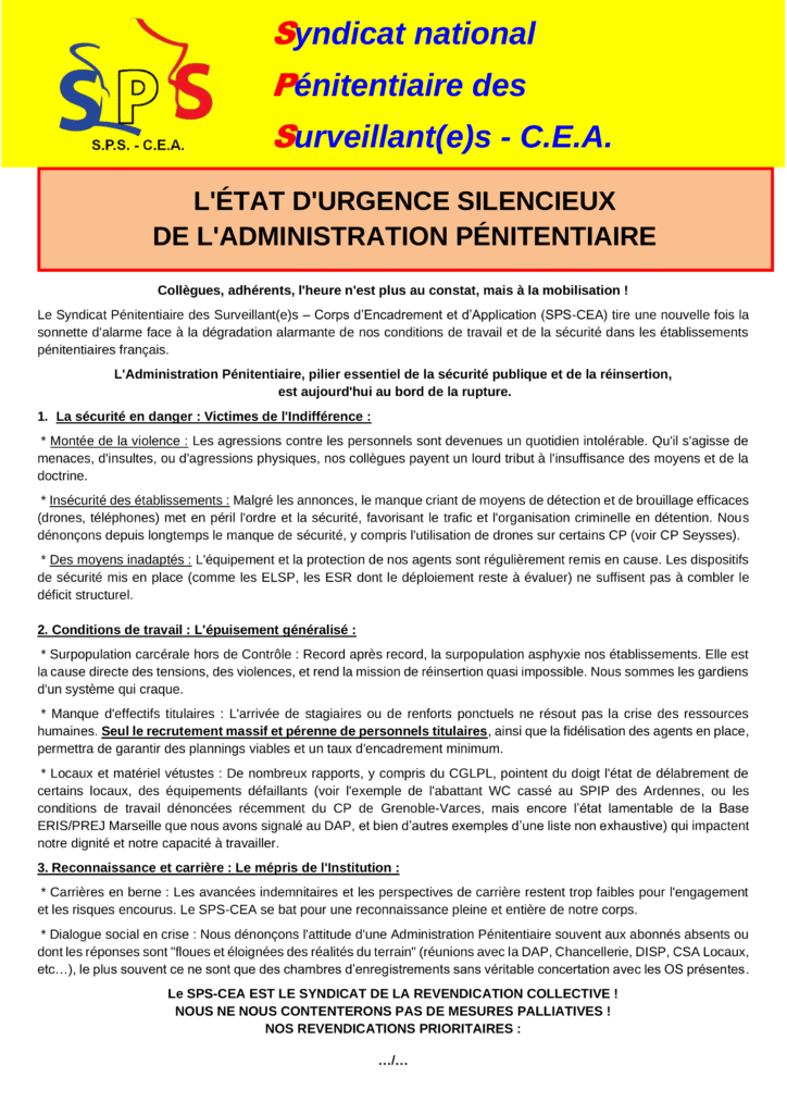 SPS-CEA | Syndicat Pénitentiaire des Surveillants – Corps d’Encadrement et d’Application