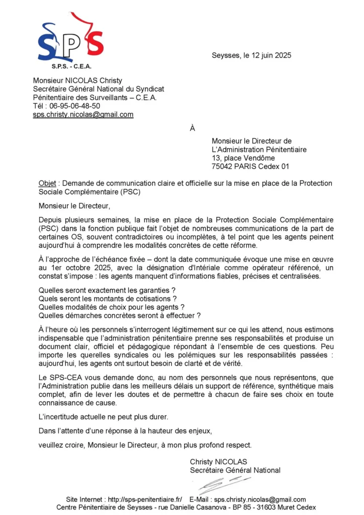 Lettre ouverte : Demande communication sur la Protection Sociale Complémentaire (PSC) 12 juin 2025 TELECHARGER