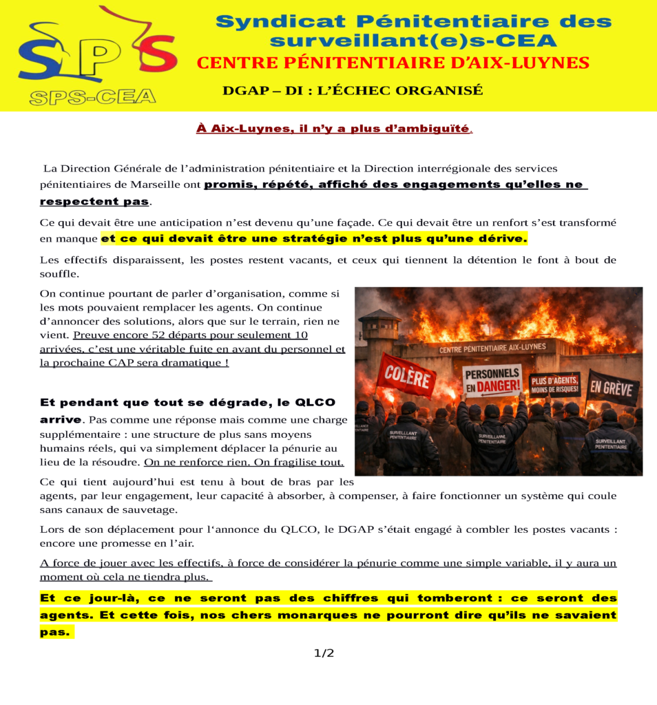 SPS-CEA | Syndicat Pénitentiaire des Surveillants – Corps d’Encadrement et d’Application