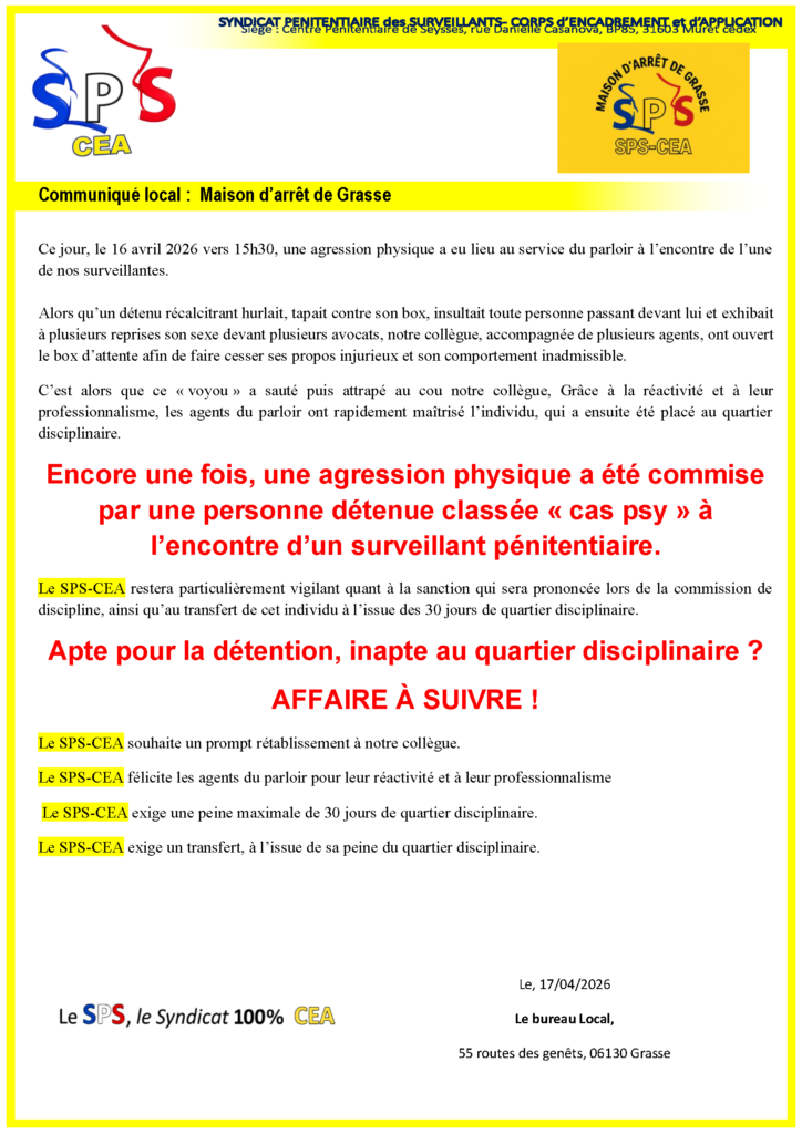 SPS-CEA | Syndicat Pénitentiaire des Surveillants – Corps d’Encadrement et d’Application