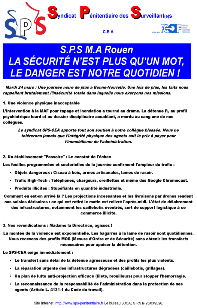 MA de Rouen : la sécurité est plus qu’un mot, le danger est notre quotidien !