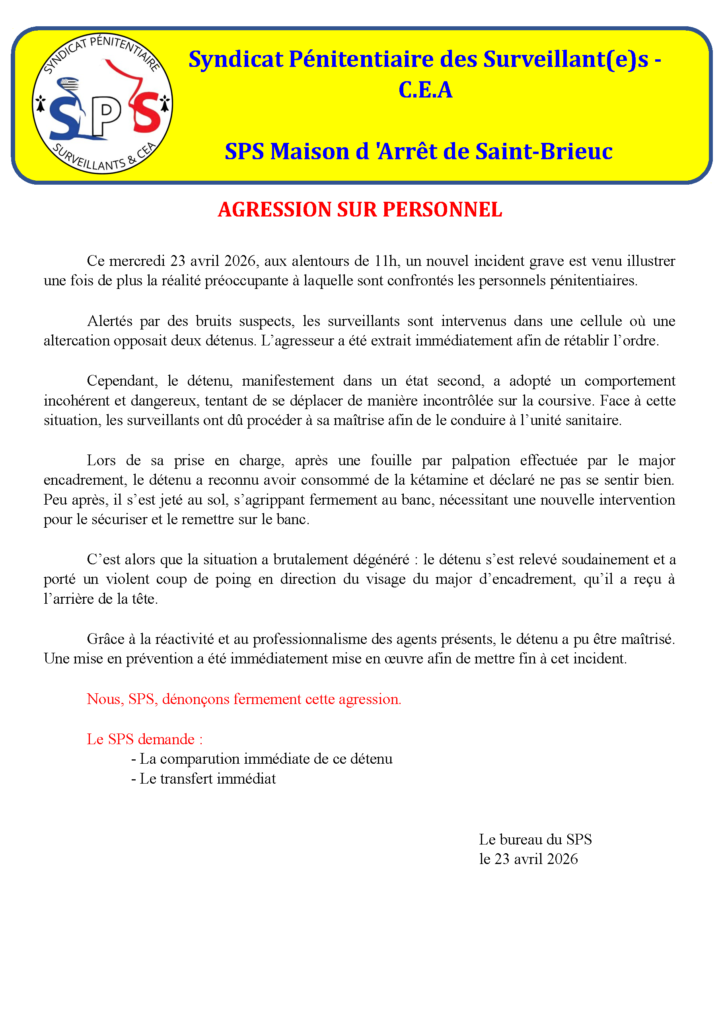 SPS-CEA | Syndicat Pénitentiaire des Surveillants – Corps d’Encadrement et d’Application