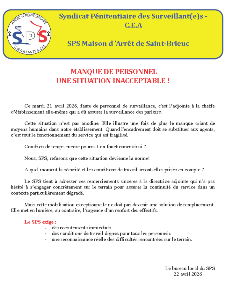 SPS-CEA | Syndicat Pénitentiaire des Surveillants – Corps d’Encadrement et d’Application