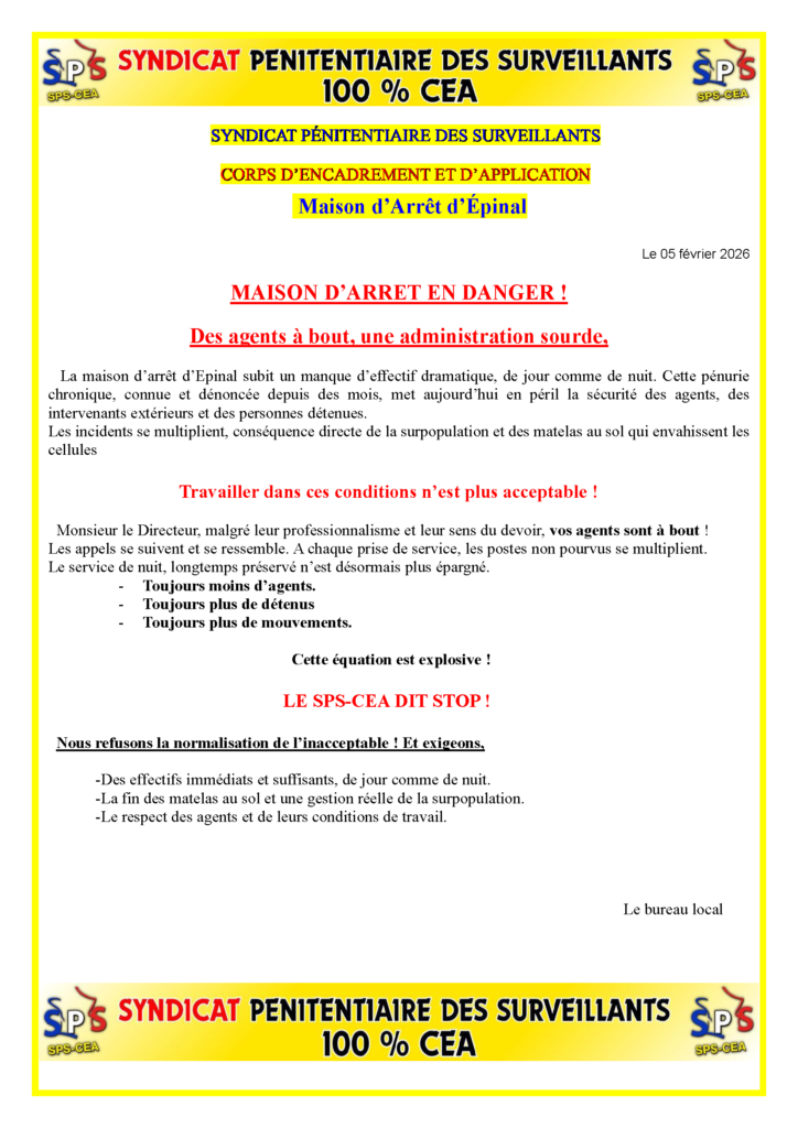 SPS-CEA | Syndicat Pénitentiaire des Surveillants – Corps d’Encadrement et d’Application