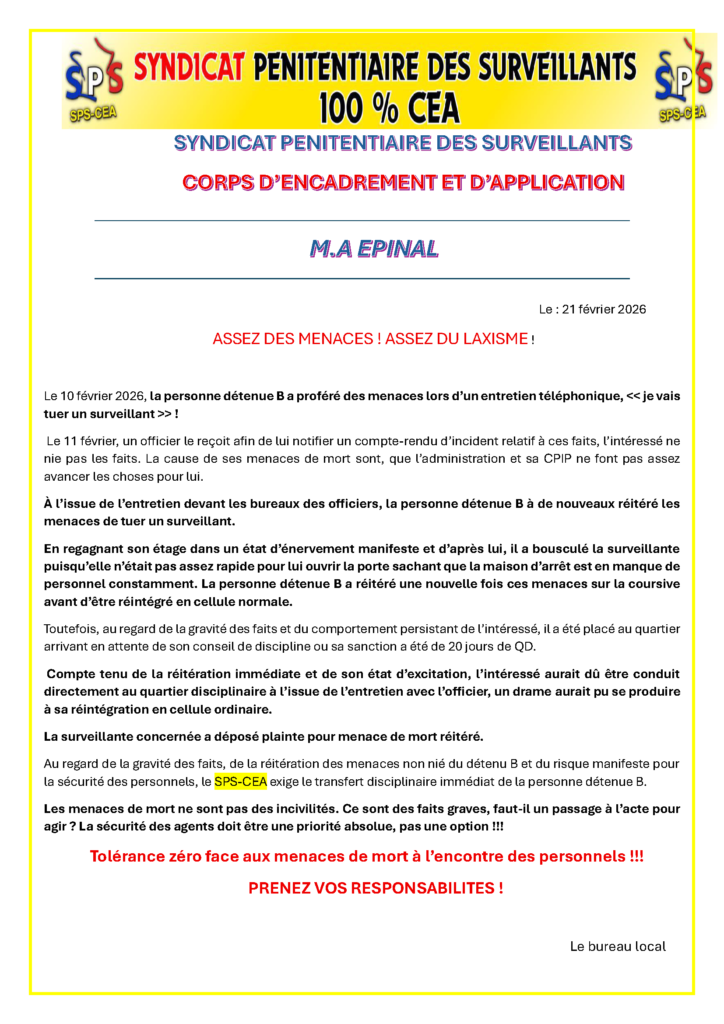 SPS-CEA | Syndicat Pénitentiaire des Surveillants – Corps d’Encadrement et d’Application