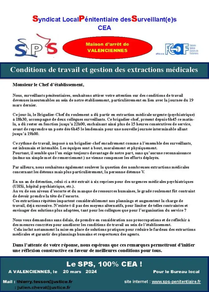 MA Valenciennes, LES SURVEILLANTS PÉNITENTIAIRES EN DANGER