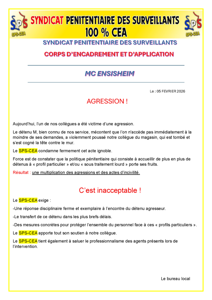 SPS-CEA | Syndicat Pénitentiaire des Surveillants – Corps d’Encadrement et d’Application