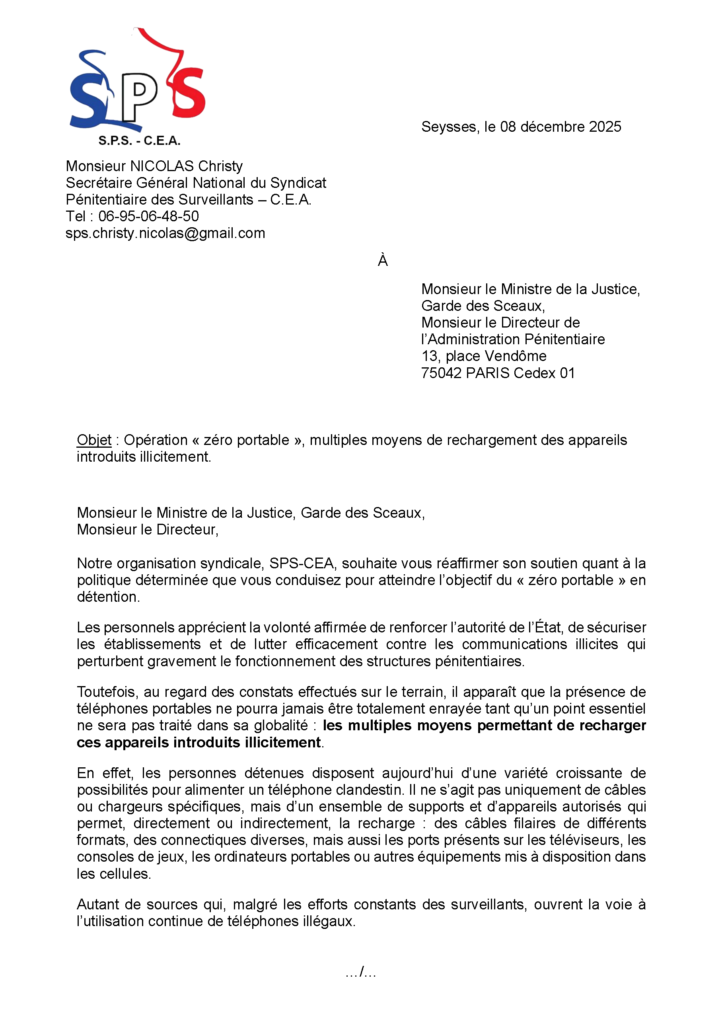 Opération « zéro portable », multiples moyens de rechargement des appareils introduits illicitement. 8 décembre 2025 Consulter le pdf