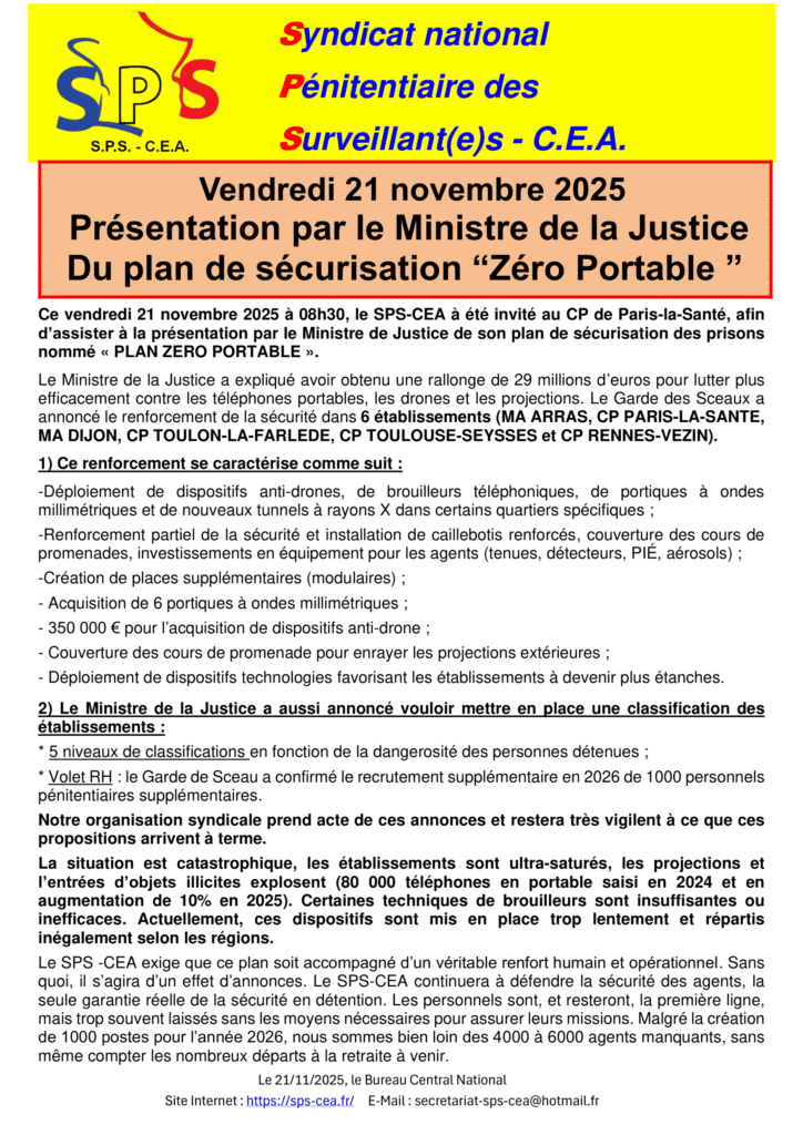 SPS-CEA | Syndicat Pénitentiaire des Surveillants – Corps d’Encadrement et d’Application
