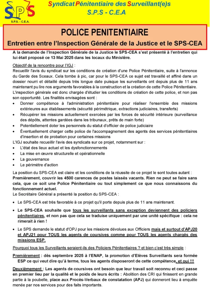 SPS-CEA | Syndicat Pénitentiaire des Surveillants – Corps d’Encadrement et d’Application