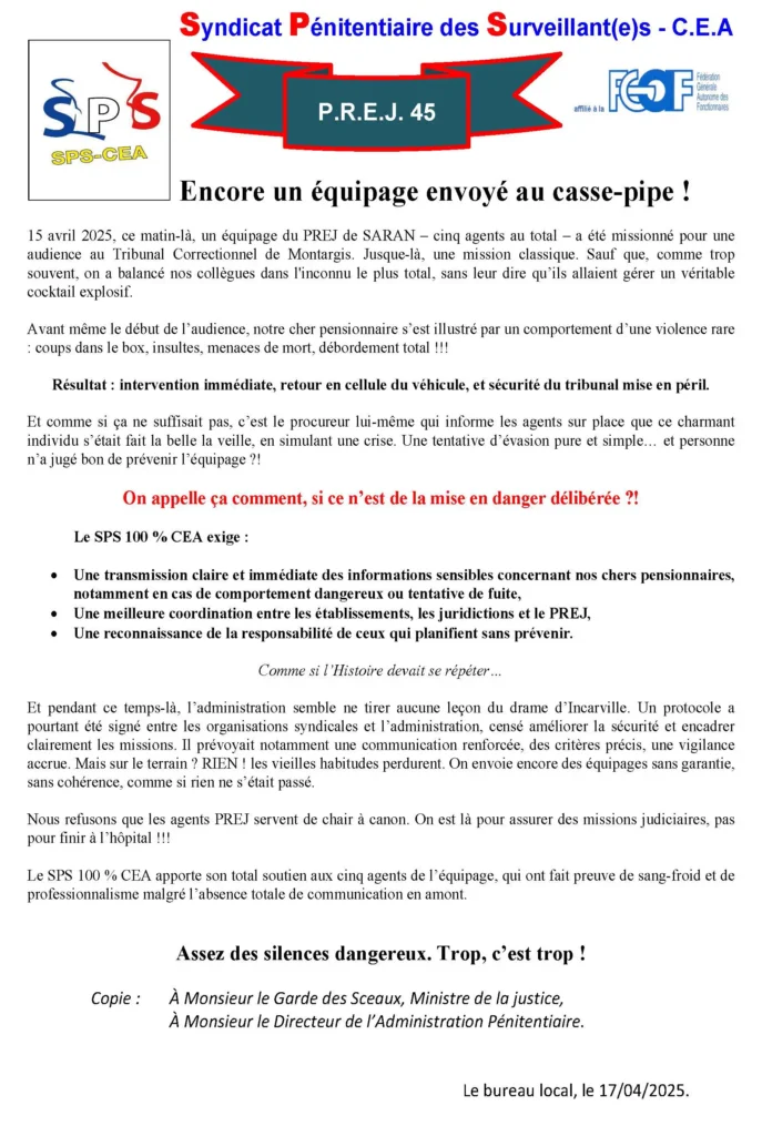 SPS-CEA | Syndicat Pénitentiaire des Surveillants – Corps d’Encadrement et d’Application