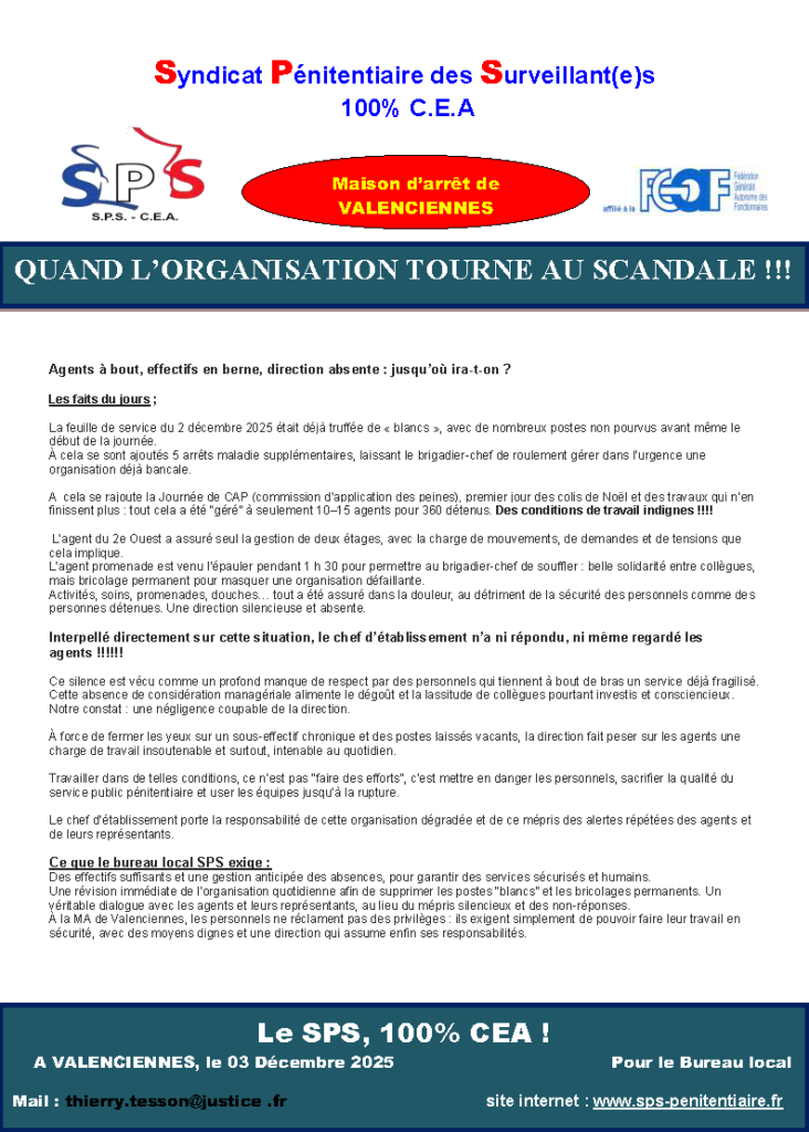 SPS-CEA | Syndicat Pénitentiaire des Surveillants – Corps d’Encadrement et d’Application