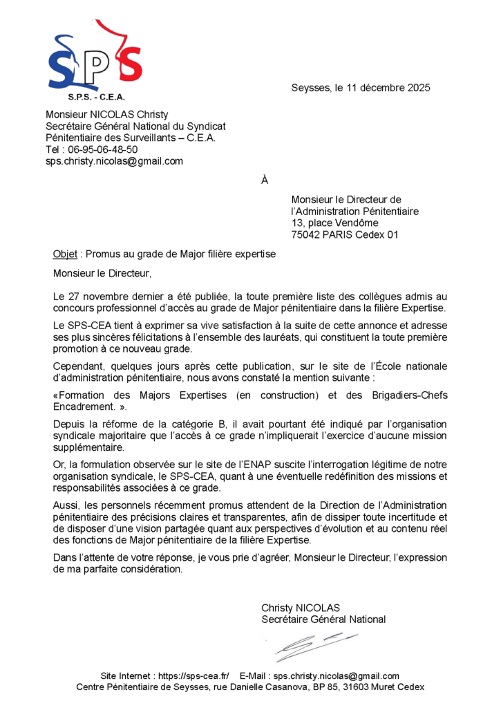 SPS-CEA | Syndicat Pénitentiaire des Surveillants – Corps d’Encadrement et d’Application