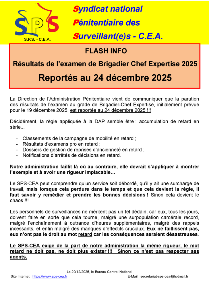 Résultat de l’examen de Brigadier Chef Expertise 2025 reportés au 24 décembre 2025 20 décembre 2025 Consulter le pdf