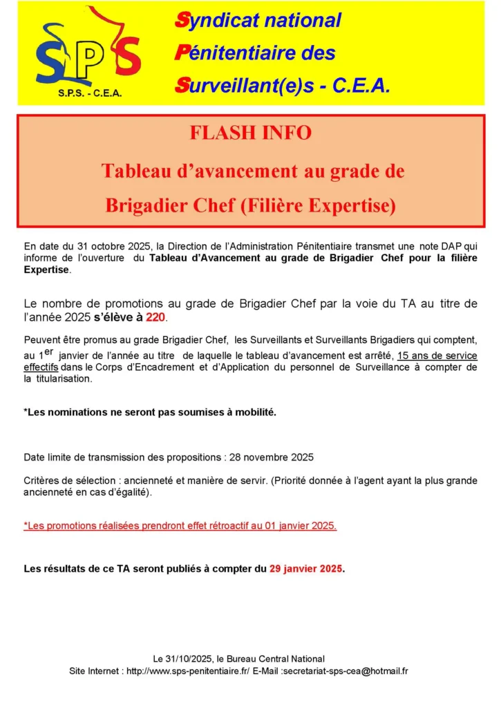 FLASH INFO Acte 2 Campagne de mobilité du second semestre 2025 des Surveillants, Surveillants Brigadiers et Brigadiers-Chefs Expertises