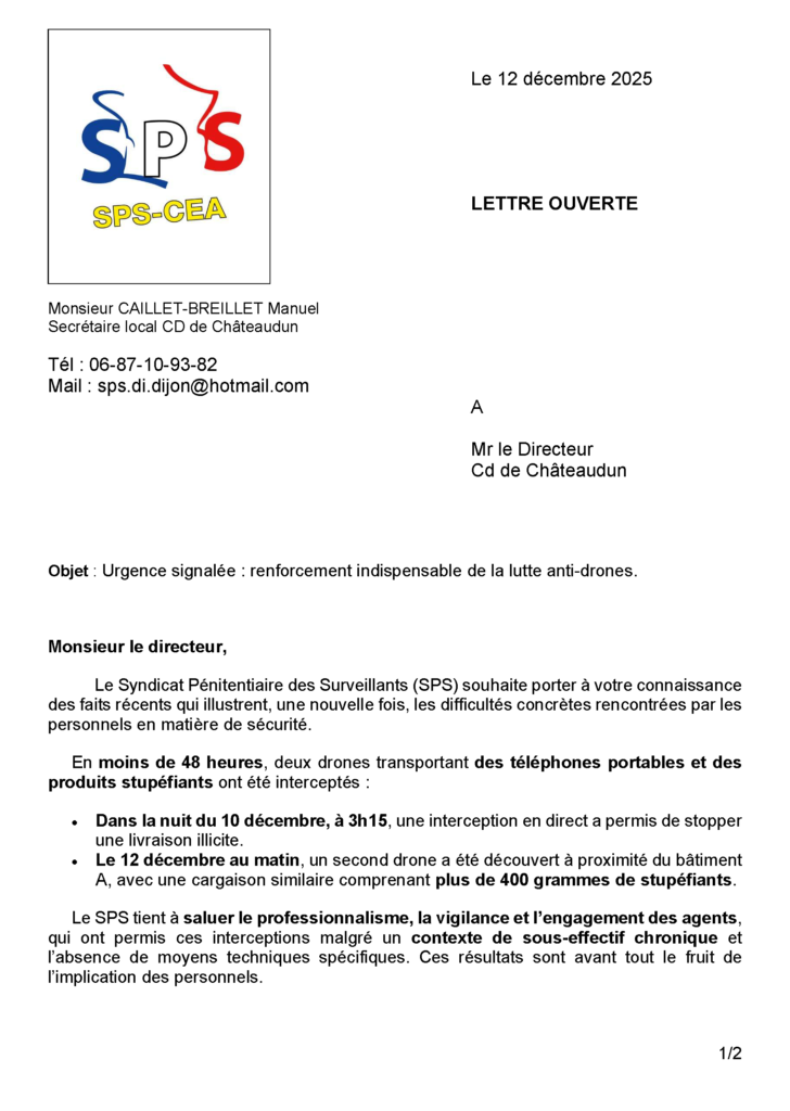 Urgence signalée : renforcement indispensable de la lutte anti-drone. 12 décembre 2025 Consulter le pdf
